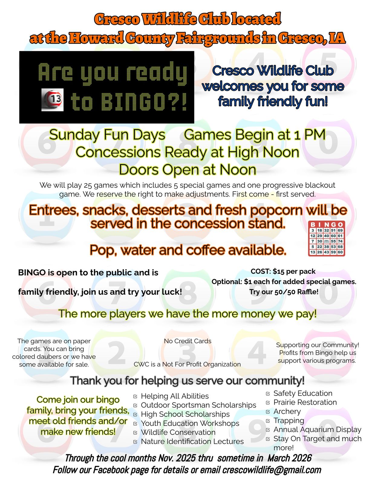 This is a super fun event hosted by Cresco Wildlife Club filled with awesome doorprizes, numerous raffles and sometimes card games.